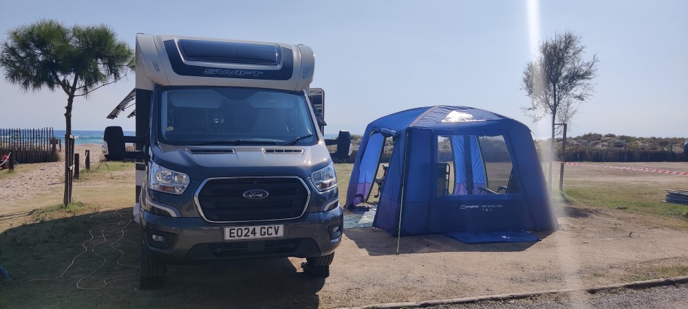 Day 1 We had a drive further back up the coast after the drama of the last place and stopped at a campsite in Creixell and were very glad we did. This place is a gem, directly on the beach front, huge pitch, clean everything and lovely pool. It's not cheap that's for sure but it's a treat before we head back inland for the crossing over the Pyrenees and back to France.